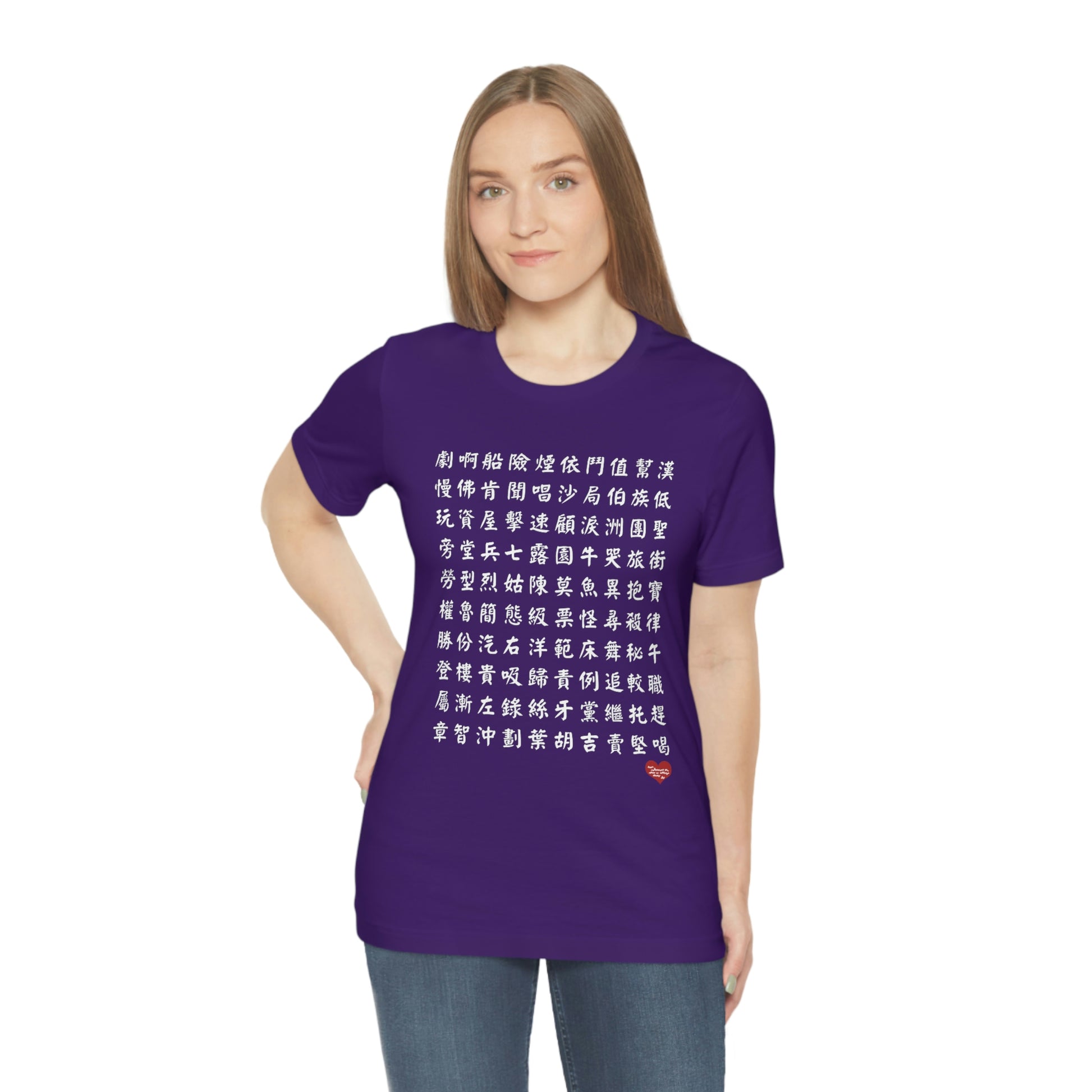T-Shirt is part of a 10 shirt series each with 100 unique and most commonly used characters in Chinese. Collect all 10, learn all 1000 characters. This set goes along with the 1000 Word Battle classes given at https://class.motherlynotes.com. Wear it, learn it yourself, learn it with your family!